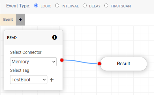 The logic event requires a set of commands to be written and result in a BOOL data type for Collect to read, if the statement outputs true the program will start, otherwise a false output will not start the program. The Result node will always confirm if the event action is cogent.