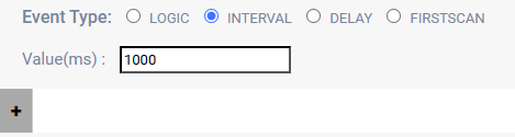 The interval event is a specified amount of time between each start of the program, simply input the amount of time you the program needs to be delayed between each time it needs to start. The below example will cause the program to start every second.