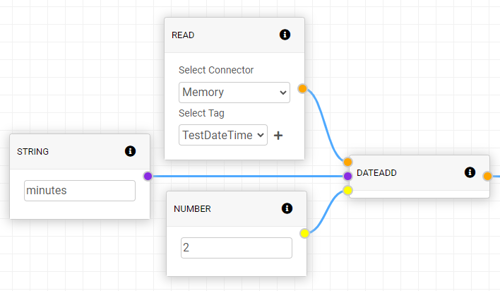 DATEADD takes a DateTime type for input 1 and will add the number of units defined by input 2 (days/minutes etc) with the number from input 3.