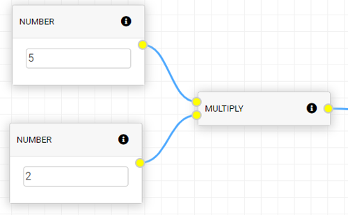 MULTIPLY will output the result of multiplying input 1 and input 2 together.