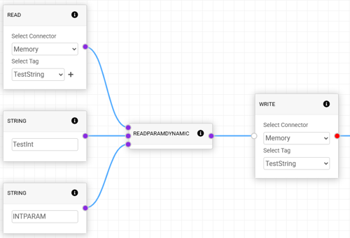 The Read Param Dynamic returns the value of the parameter set for the tag, allowing for dynamic inputs.