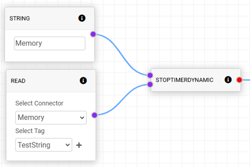 STOPTIMER will stop the timer. The connector name and tag name are set by input 1 and 2 respectively.